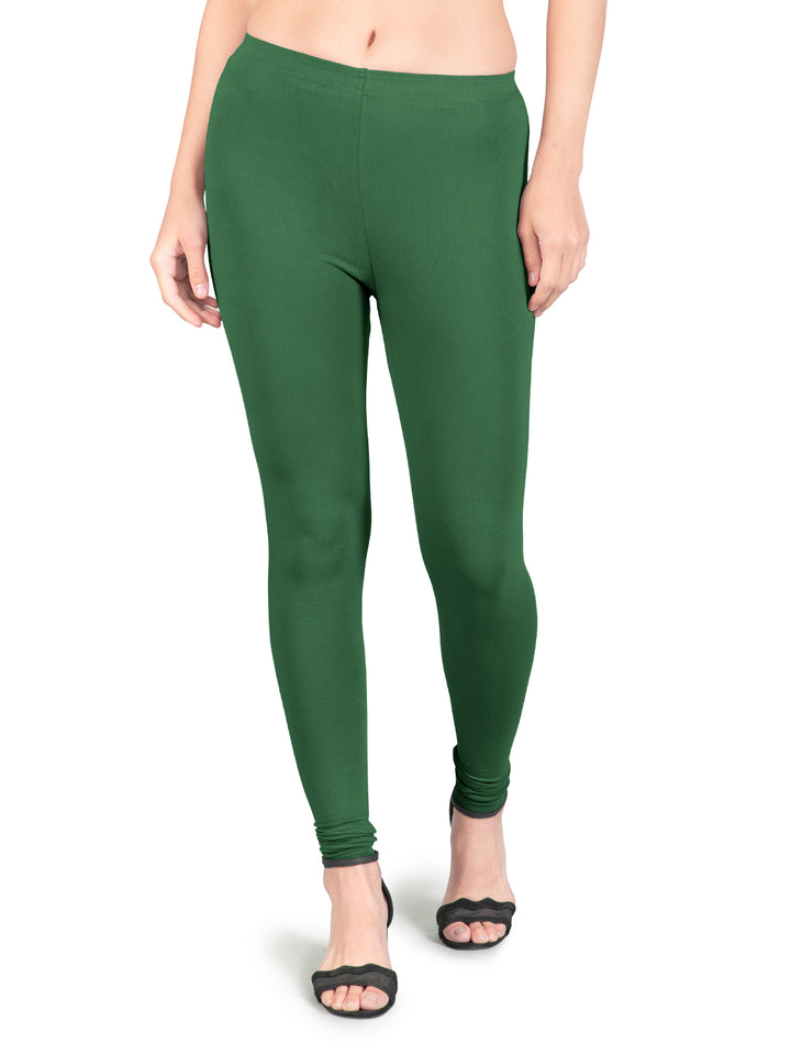Bottle Green Cotton Spandex Churidar Length Leggings