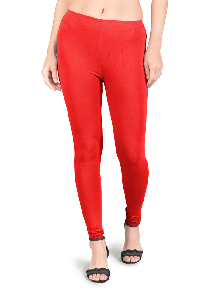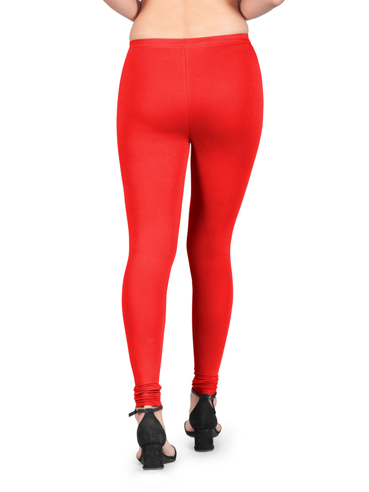 These Red Cotton Spandex Churidar Length Leggings combine traditional style with modern comfort. Crafted from a cotton-spandex blend, they offer breathability and a flexible fit that moves with you. Their churidar length ensures a snug, streamlined silhouette perfect for pairing with a variety of tops and tunics. Ideal for everyday wear, these leggings provide lasting comfort without sacrificing style.