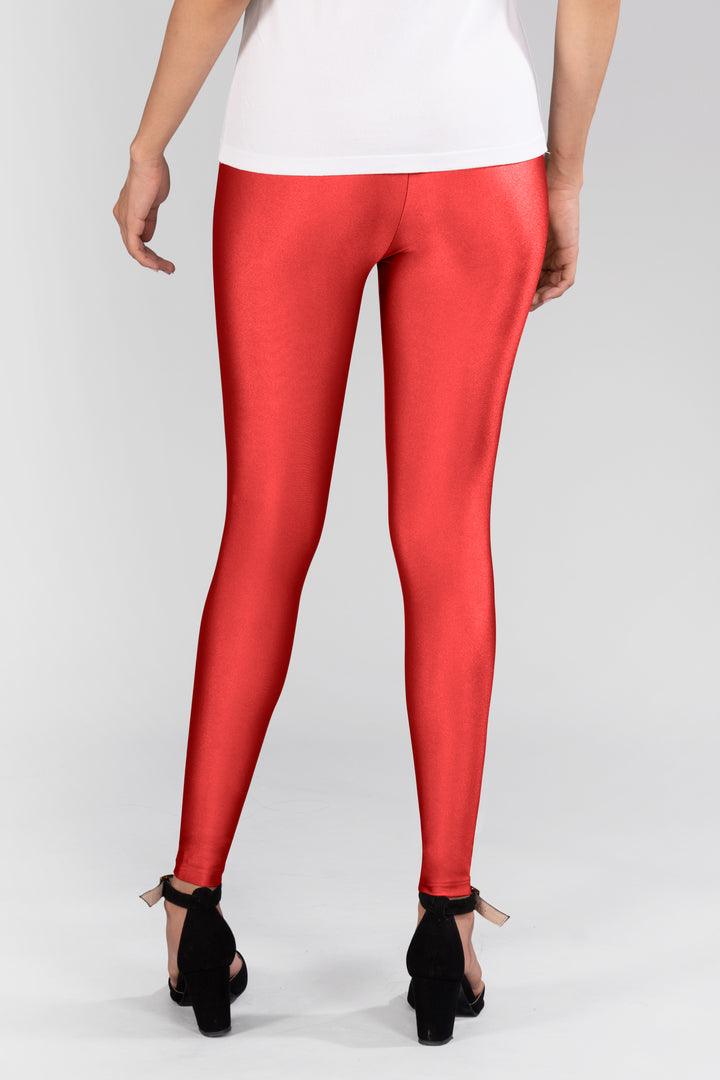 Red Shimmer Ankle Length Leggings
