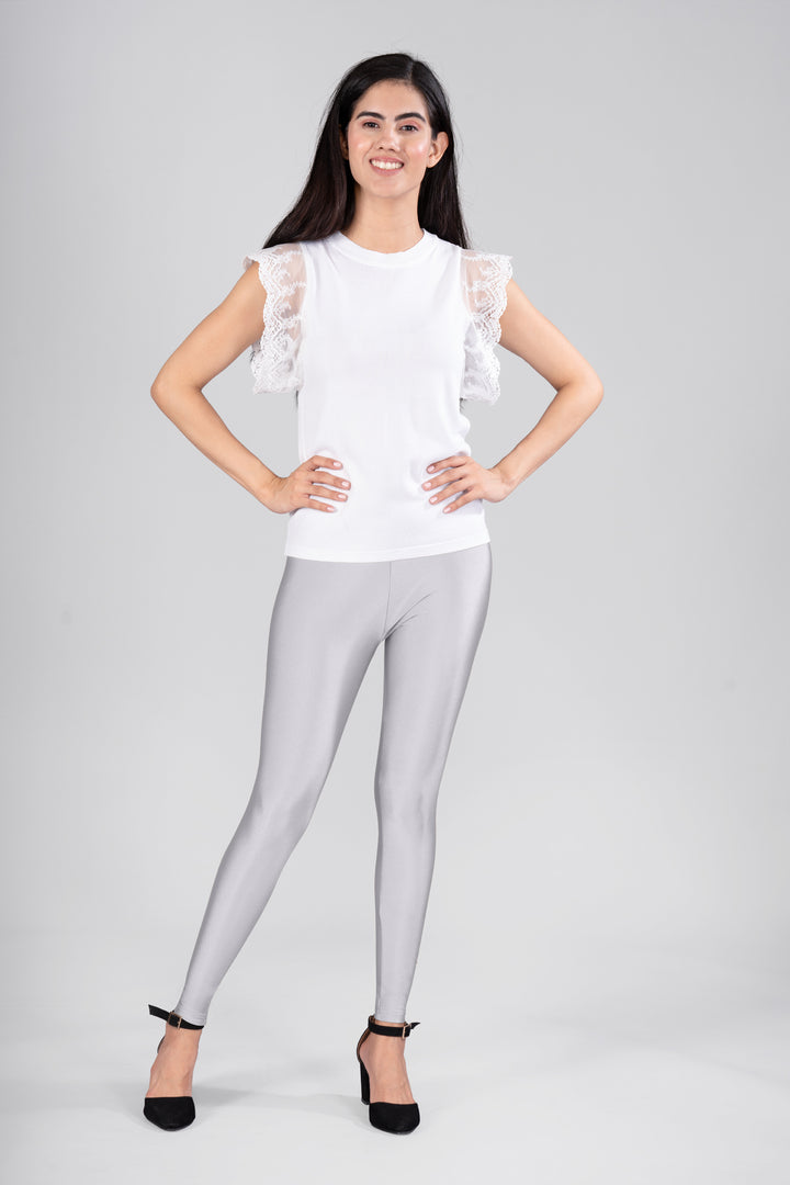 Crafted from lightweight nylon with a subtle shimmer, these ankle-length leggings offer a sleek and contemporary fit. Their shimmering finish enhances your look with a touch of understated elegance, while the ankle length ensures versatile styling for both casual and active wear. Designed for comfort and durability, they provide a smooth silhouette that moves with you throughout the day.