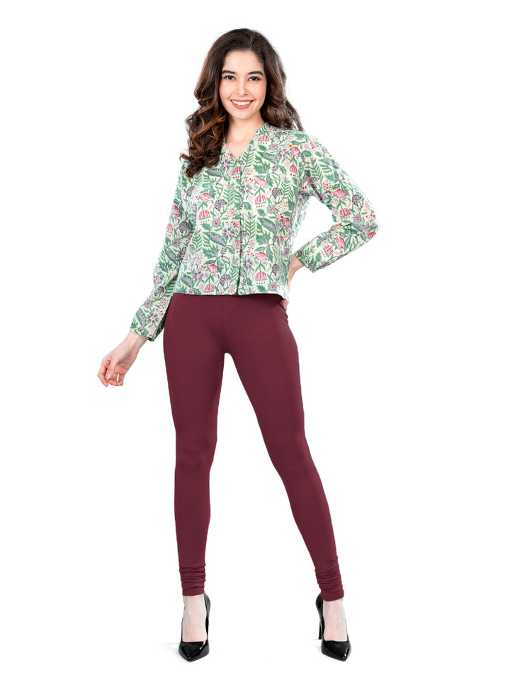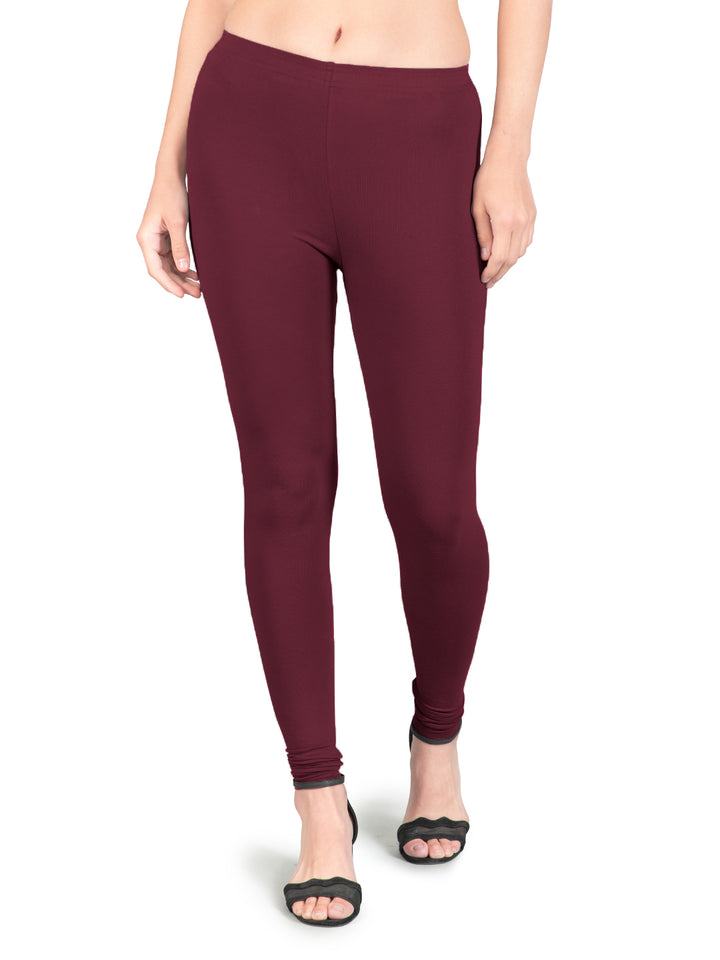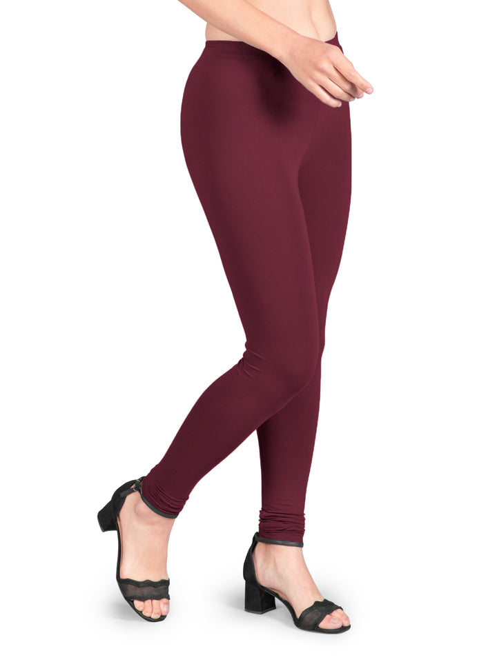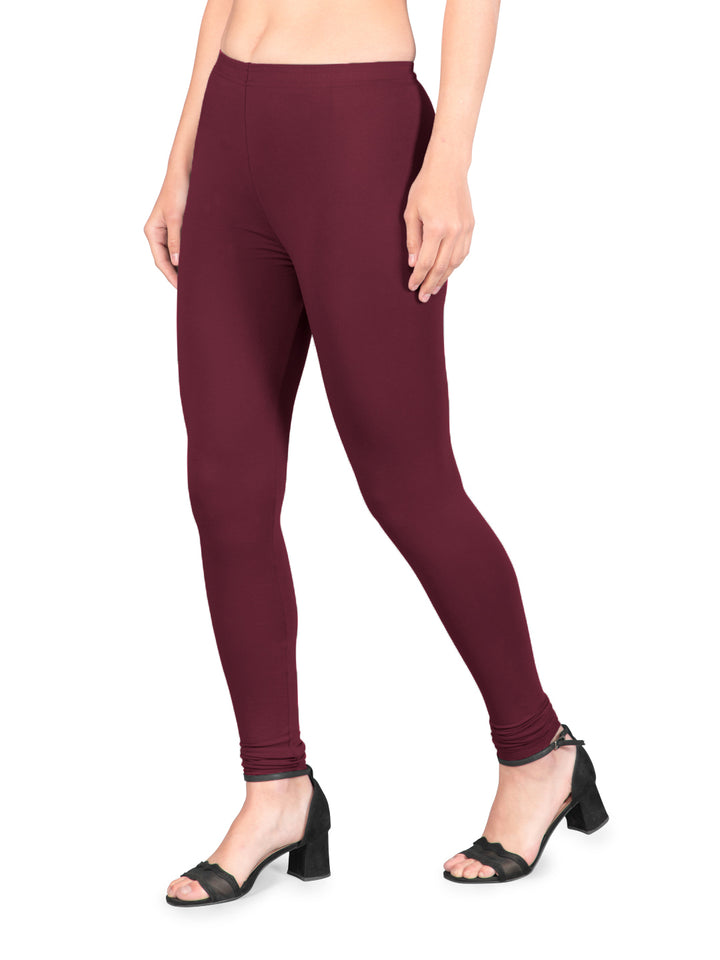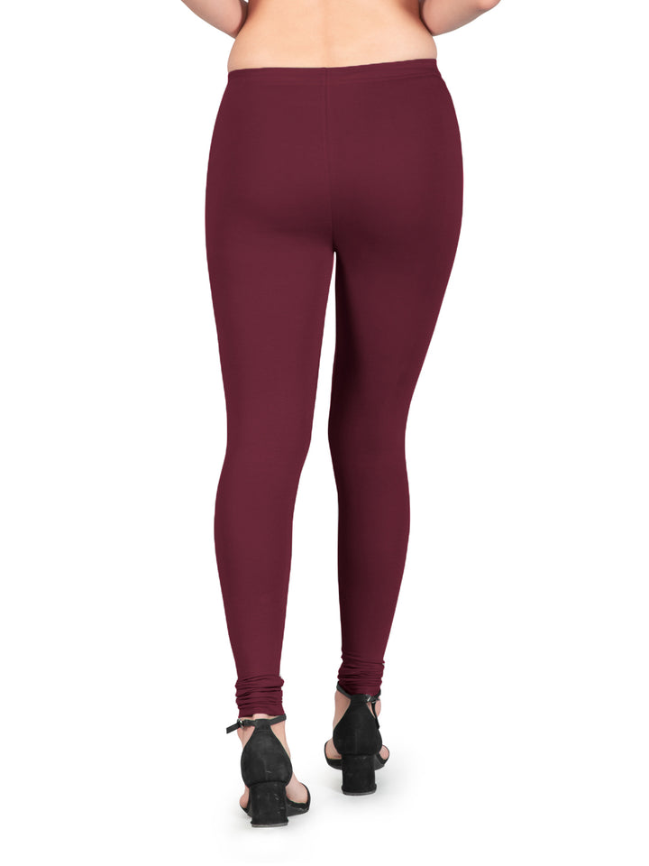 These Wine Cotton Spandex Churidar Length Leggings offer a perfect balance of comfort and stretch. Crafted from a blend of cotton and spandex, they provide breathability along with flexibility to support ease of movement. The churidar length design ensures a traditional yet streamlined fit, ideal for pairing with ethnic or casual wear. Durable and soft, these leggings deliver long-lasting wear without compromising on style or comfort.